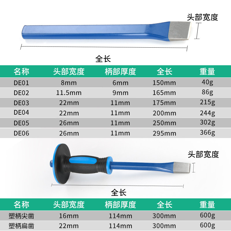 Small head flat chisel 8x150mm flat chisel 12x165mm flat chisel 22x175mm flat chisel 22x200mm flat chisel 26x250mm flat chisel 26