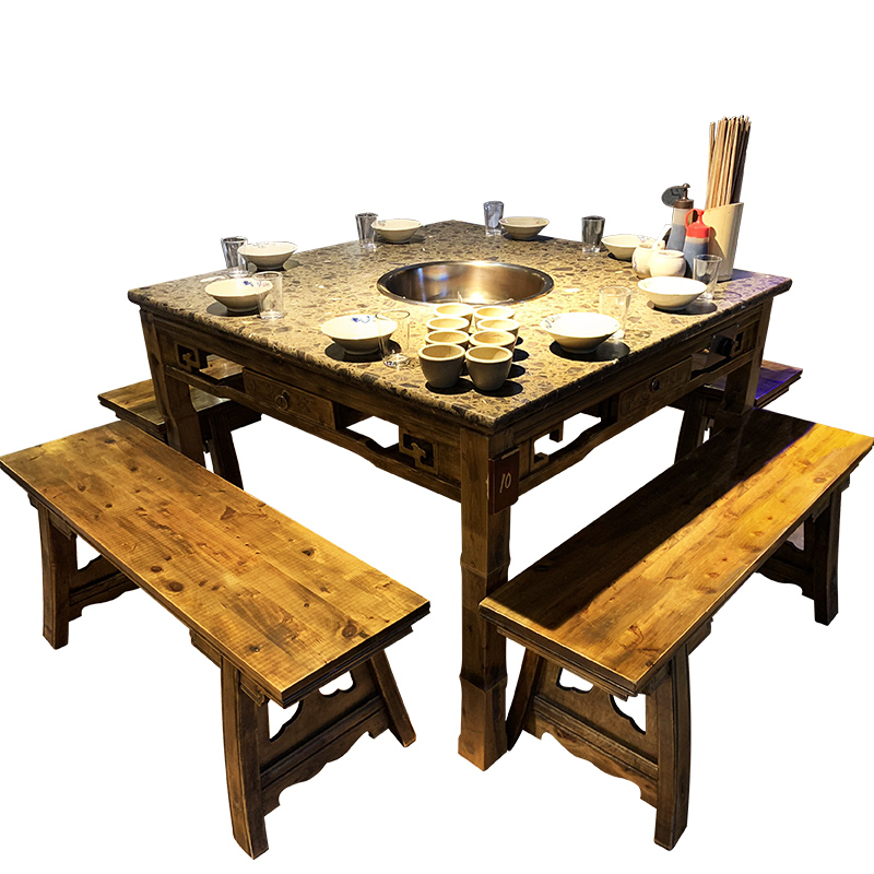 Hot pot restaurant marble smokeless gas stove hot pot table and chair combination hot pot table induction cooker one restaurant commercial