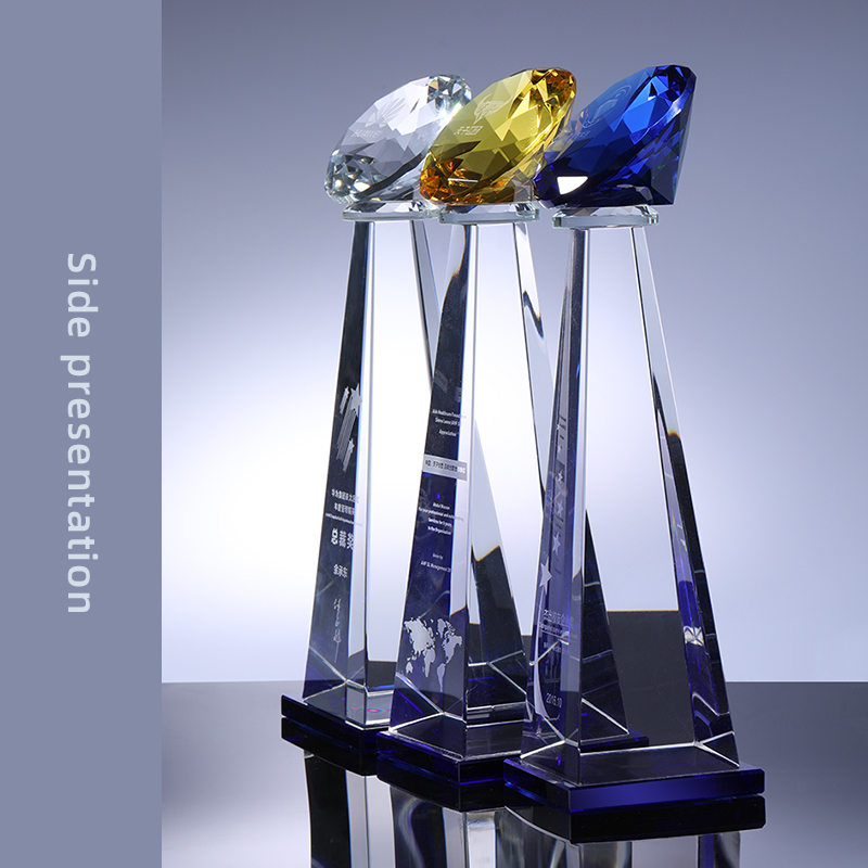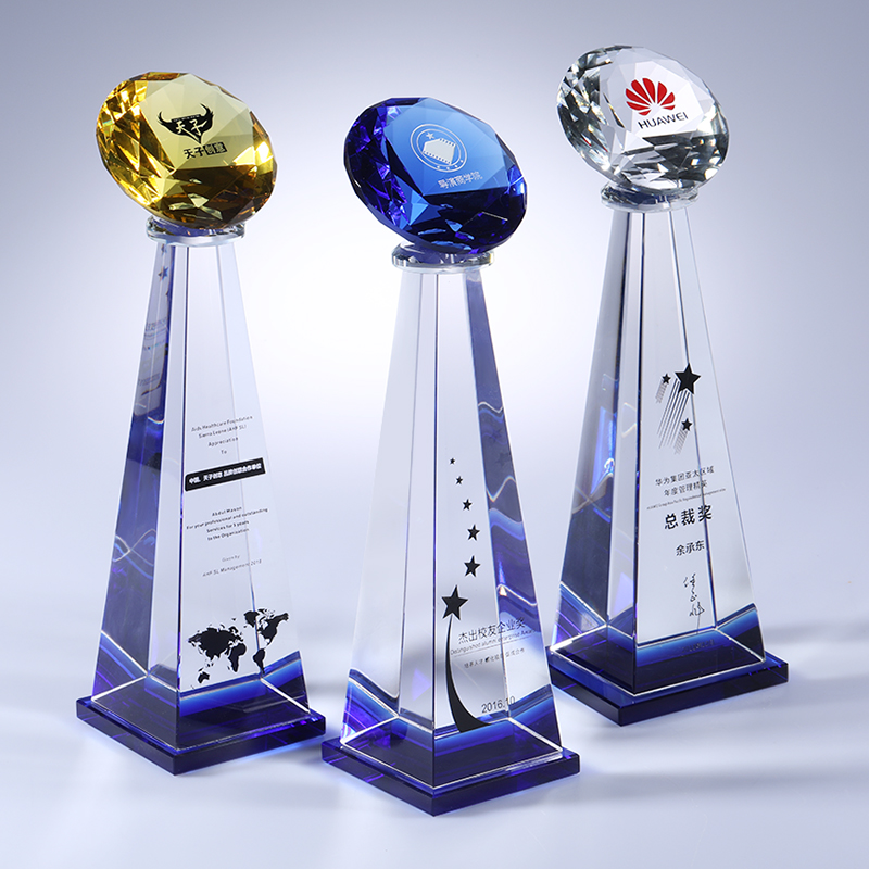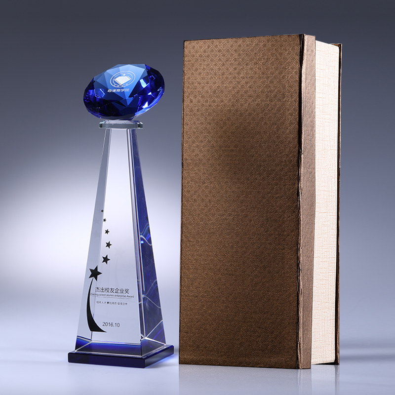 Blue Crystal Trophy Custom Business Medal Set for Diamond Creative Making Excellent Employee Annual Meeting Award Presentation Ceremony