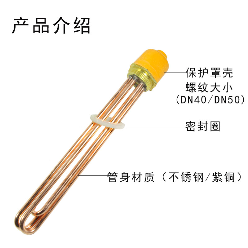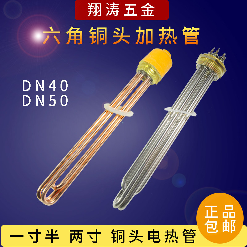 Hexagonal copper head electric heating tube DN40DN50 red copper heating tube one inch and half two inch thread electric heating tube 220V380V