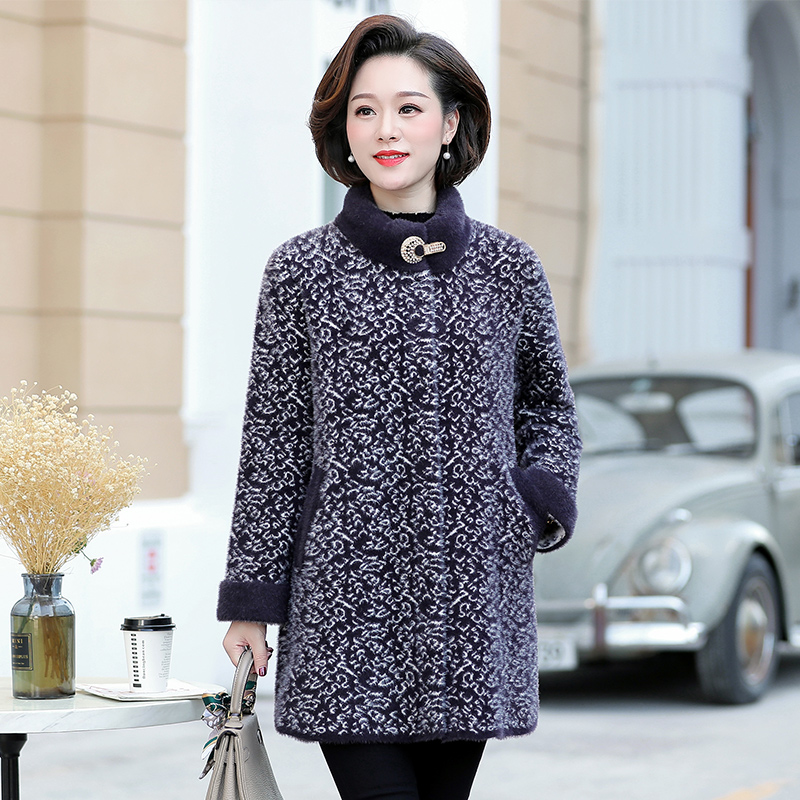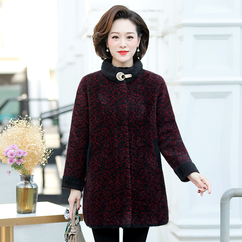 Mom 2021 new autumn and winter jacket middle-aged spring western style large size imitation mink velvet coat middle-aged and elderly women's clothing