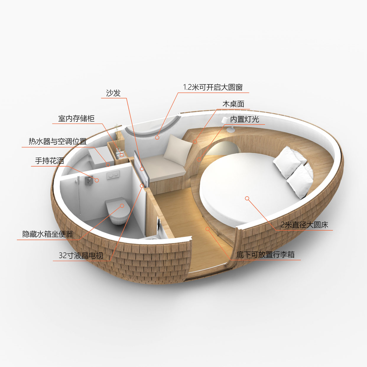 Leisurely wooden micro-building wooden structure shaped holiday wooden house Egg-shaped house Design and construction 15~20㎡