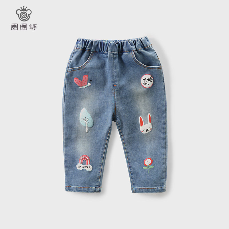 Circle Sugar Girl Pants Baby Pants Baby Spring Autumn Slim Fit Pants Children Jeans New Foreign Pie Baby Casual Pants
