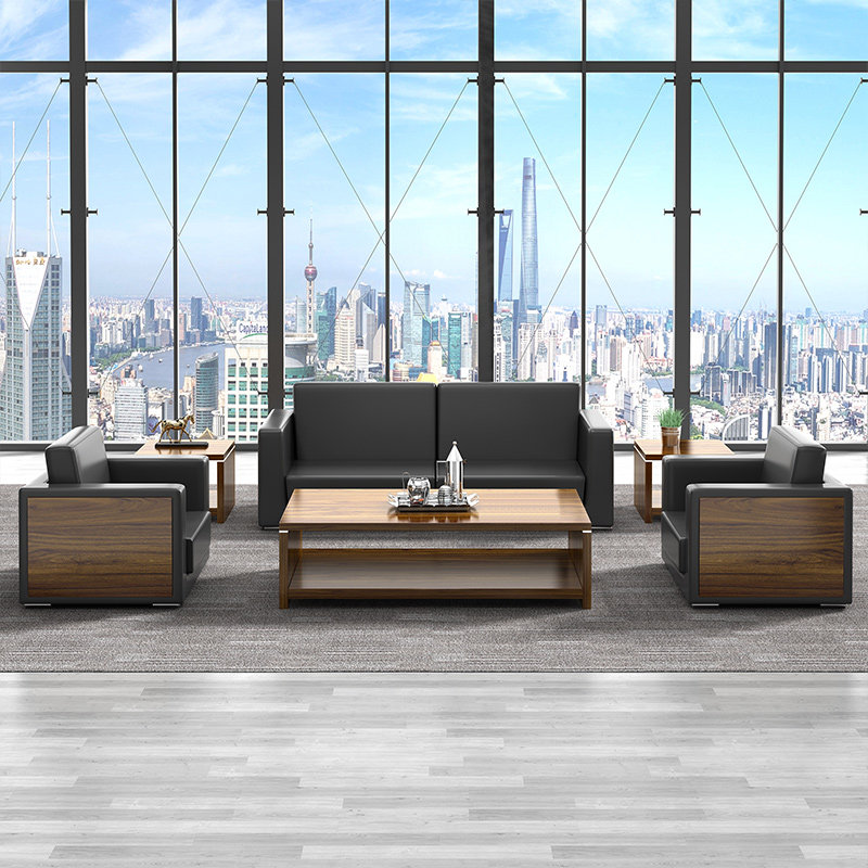 Office sofa Tea Table Composition Suit Office Business Brief Modern Real Leather Sofa Trio office furniture