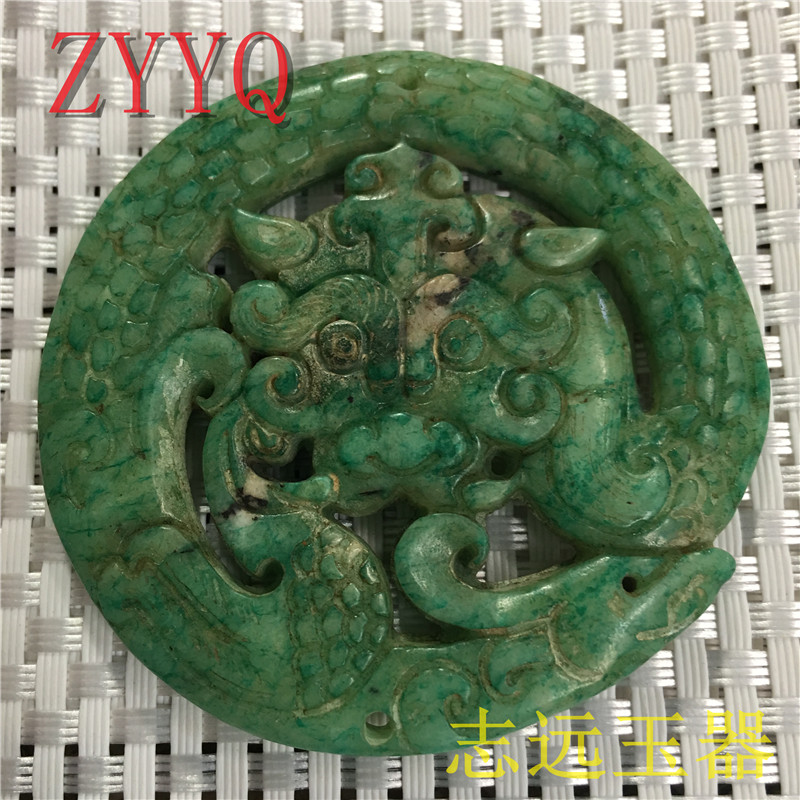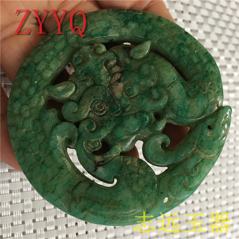 Imitation Jin dynasty era natural old Xiu jade green Qin-shaped jade dragon-shaped ghost head hollowed-out jade and antique ancient play collection
