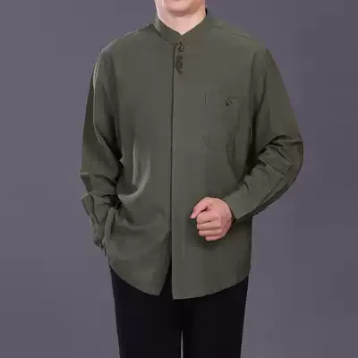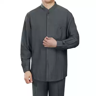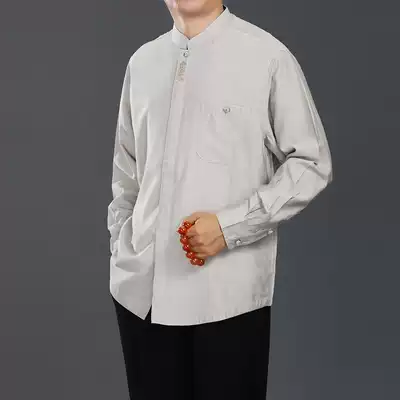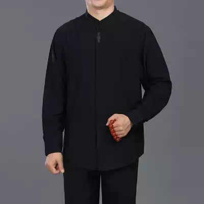 Chinese style long-sleeved stand-up collar shirt new spring thin inner collar contrast color silk blue and white porcelain high-end men's Tang suit