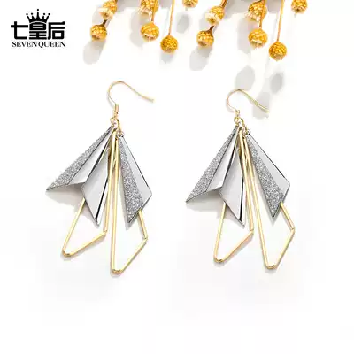 Simple geometric earrings female long version Korean temperament advanced sense French Net red ear jewelry 2020 New Tide ear needle