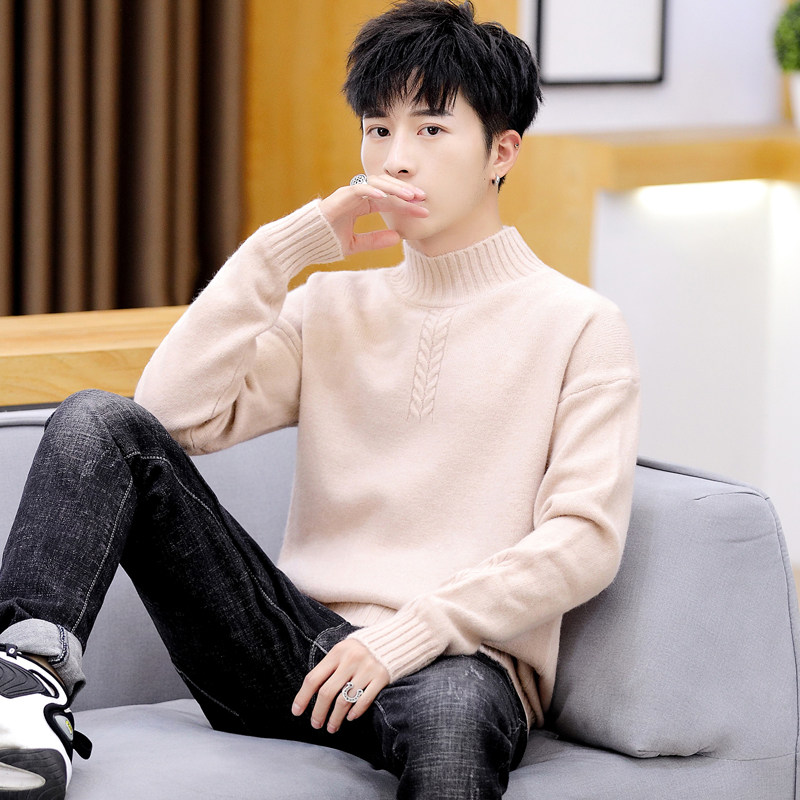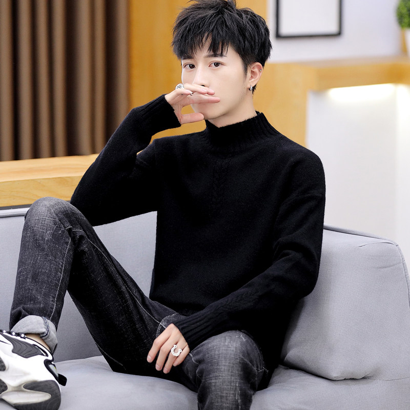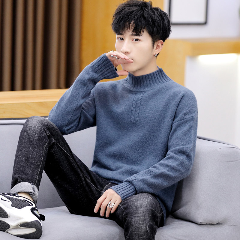 Semi-high collar sweater male Korean version trendy personality handsome in winter hitting bottom-knitted sweatshirt 2020 New student sanitary clothing