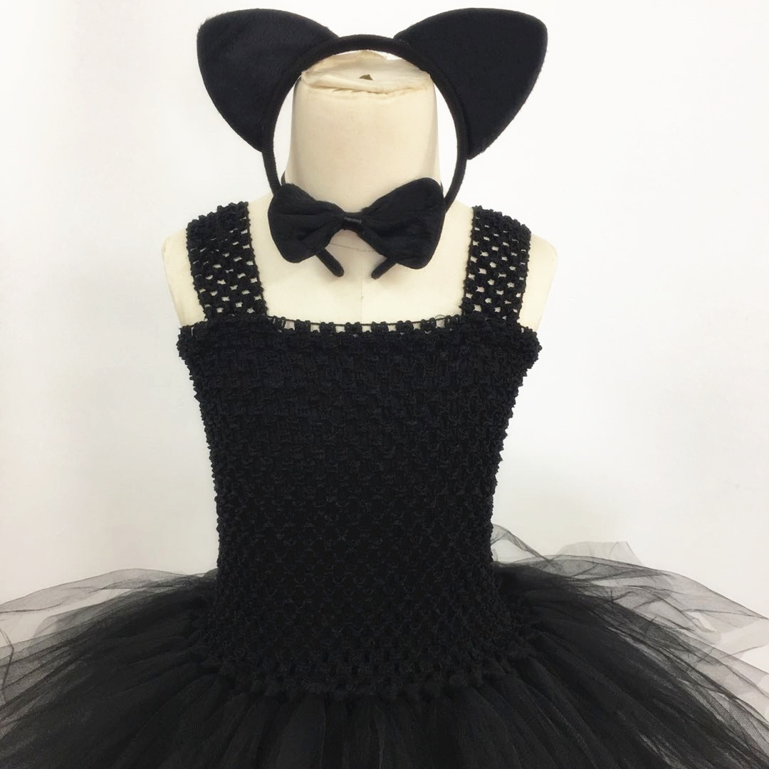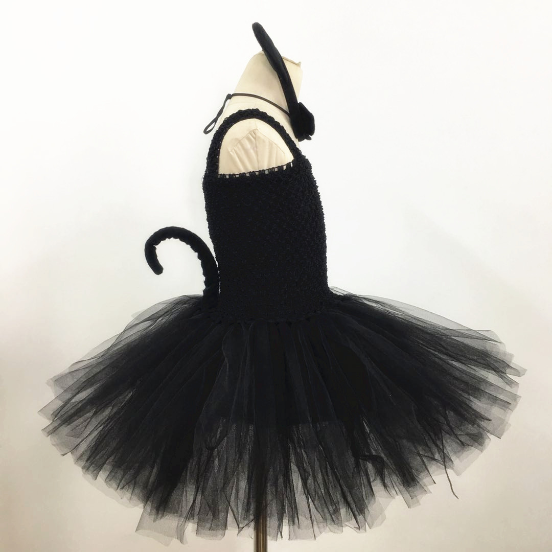 Girls Halloween catwalk costume black cat performance skirt children's cat tutu skirt performance costume black cat cos