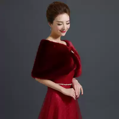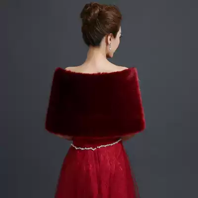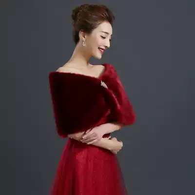 New Bride wedding wedding dress woolen shawl fur wine red shawl dress cheongsam shawl dress cheongsam shawl wine red