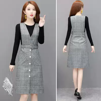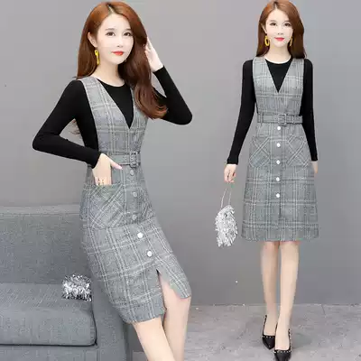 Plaid Knitted Dress Women 2021 Spring New Temperament Tender Fashion Sweater Holding Baby Bag Skirt Set