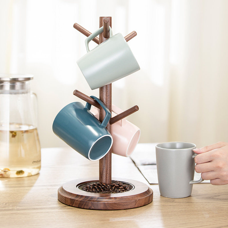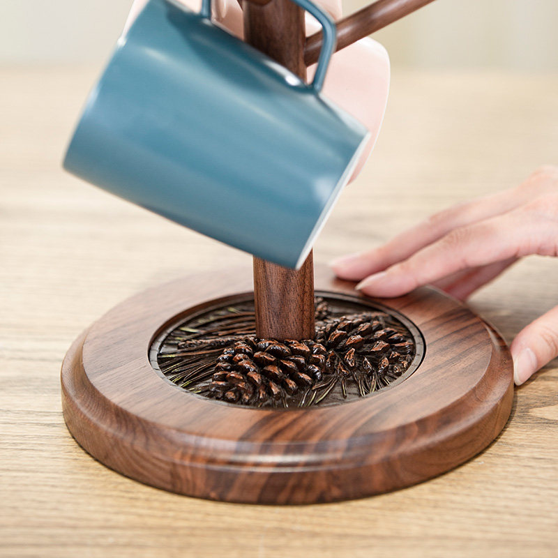 Black Walnuts Wooden Shelf Home Living Room Solid Wood Drain Cup Rack Glass Mark Cup Rack Creative Coffee Cup Rack