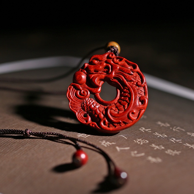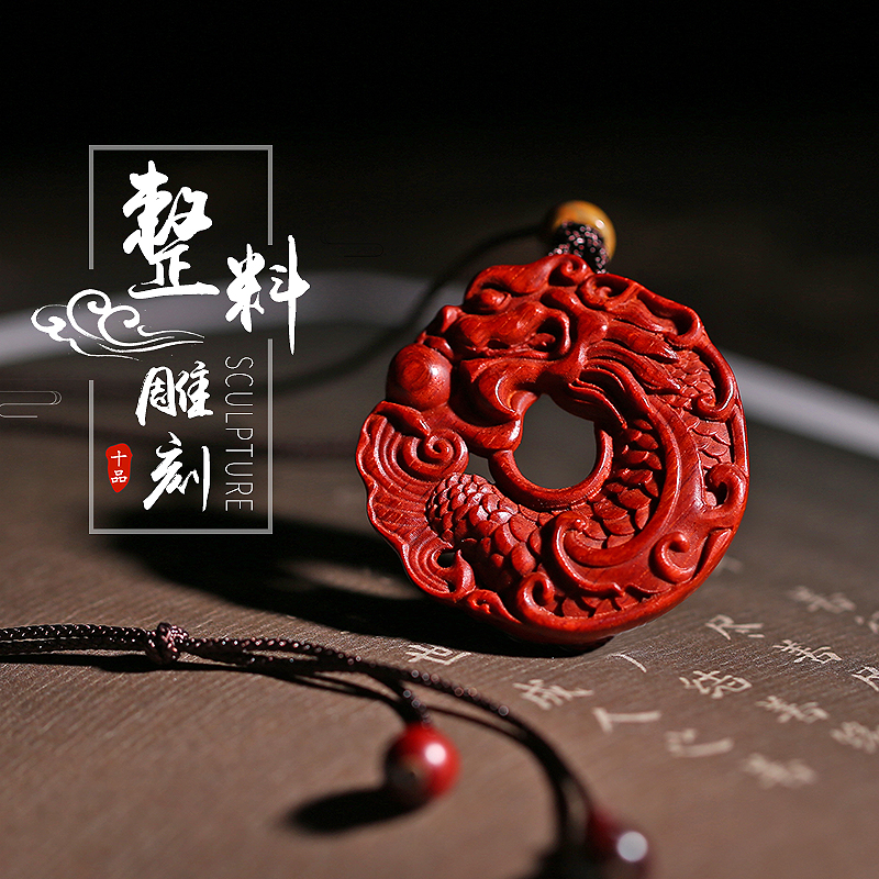 Indian small leaf purple sandalwood with red wood engraved wood key buckle pendant in red wood