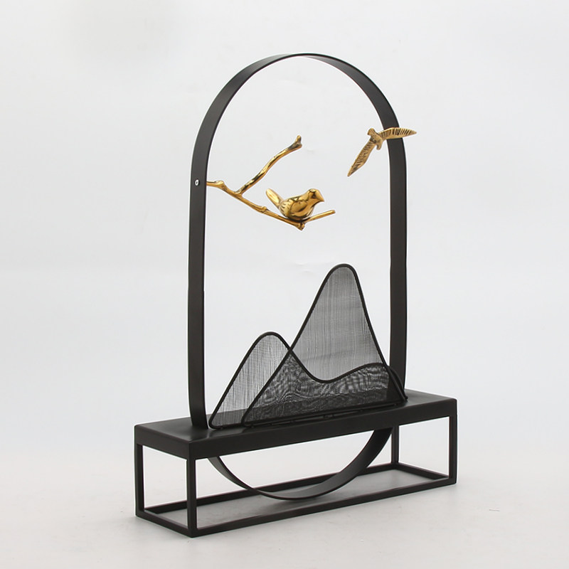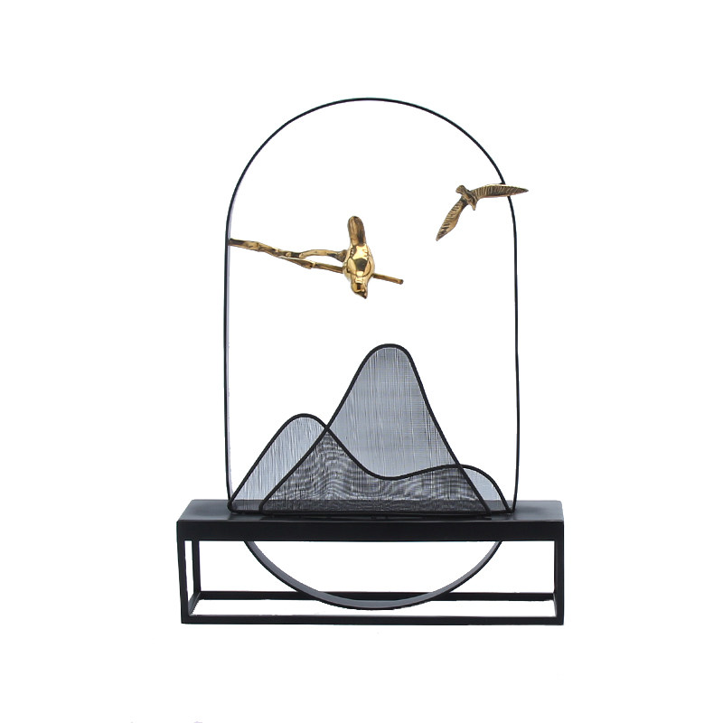 New Chinese-style creative simple iron mountain copper bird ornaments living room model room entrance hotel side view table decorations