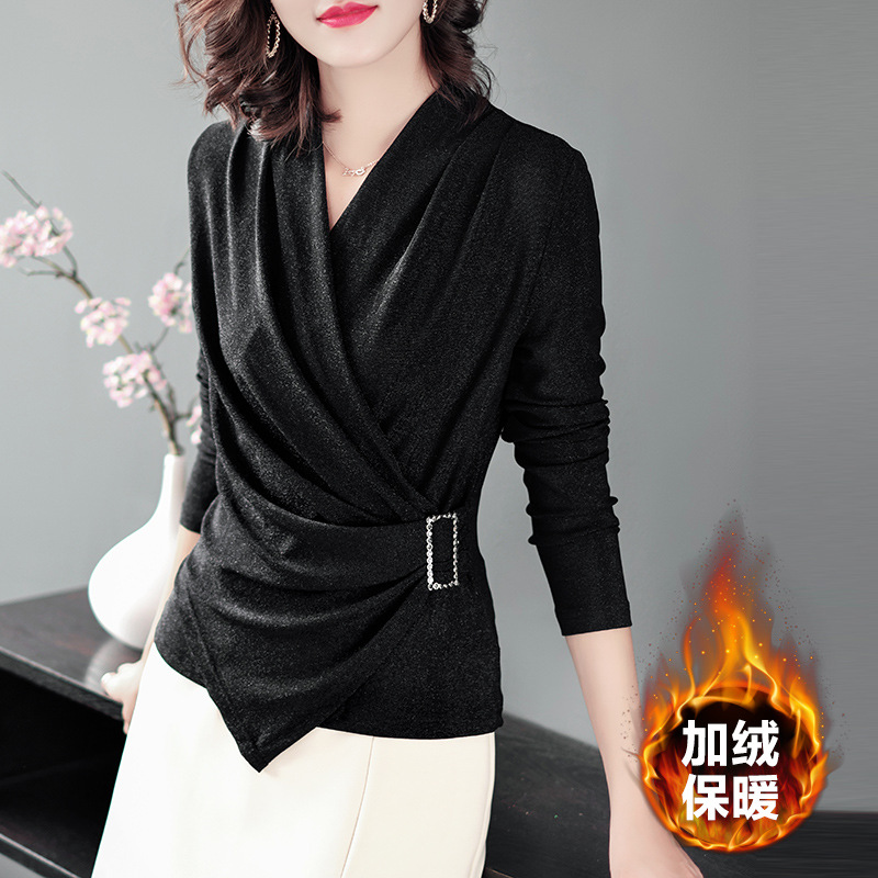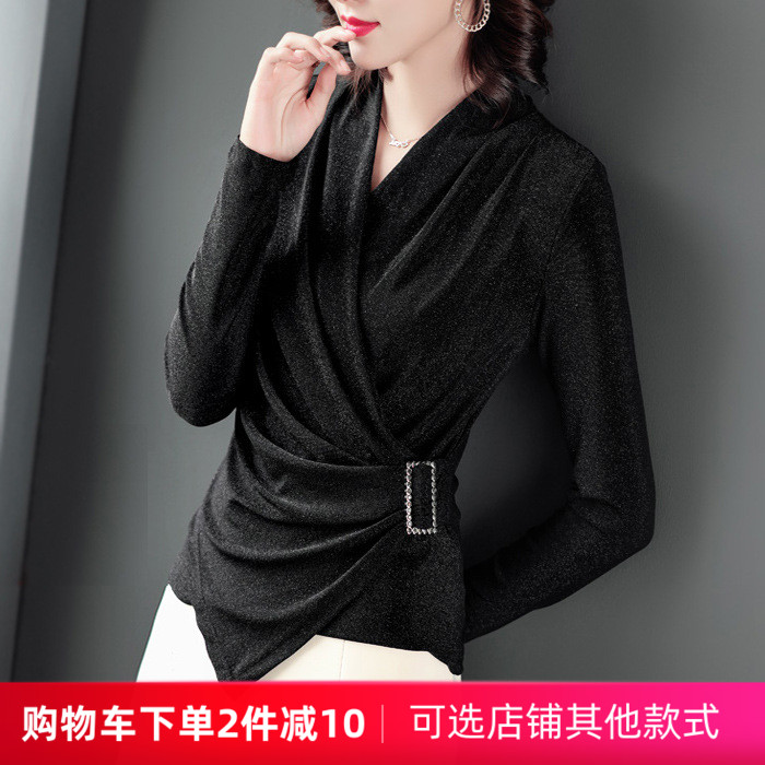 Spring new style belly covering v collar national standard modern ballroom dance top Latin dance long sleeves dancing square dance costume woman