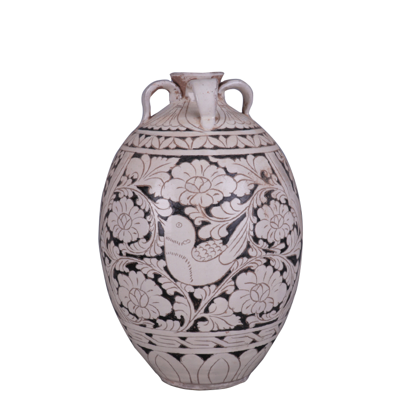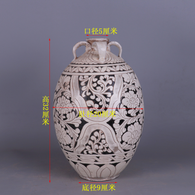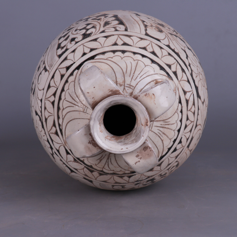 Song Dynasty Cizhou Kiln Black Bottom Engraved Flower and Bird Figure Four Series Bottles Antique Porcelain Jingdezhen Antiques, Antiques, Old Objects Ornament Collection