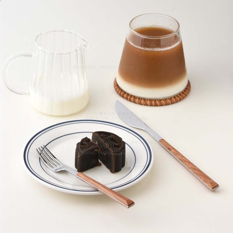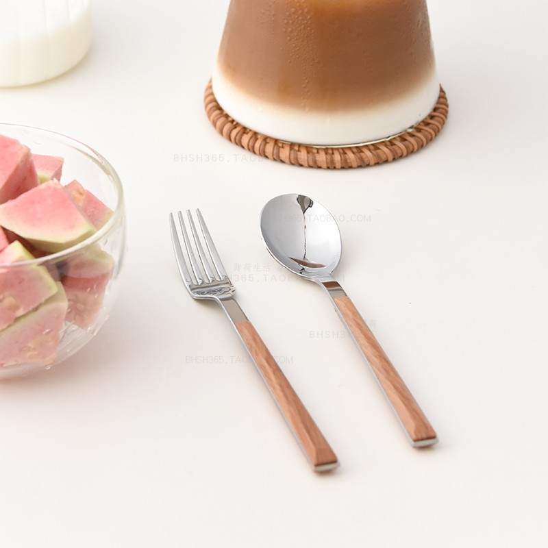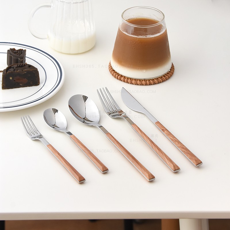 Japan-ROK small and clear new imitation wood handle stainless steel knife fork spoon Western-style cutlery fruit fork Bull Leather Knife Sweet Spoon main dining spoon