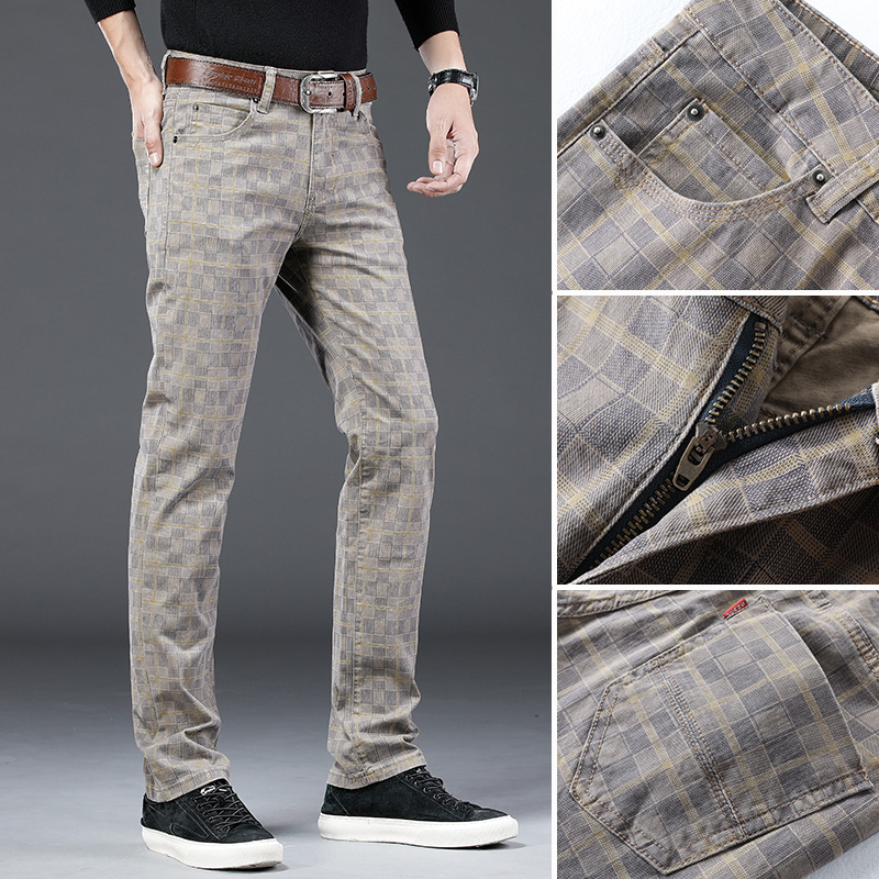 Spring and autumn checkered casual pants male pure cotton straight cylinder loose male pants spring casual long pants for body personality men's pants