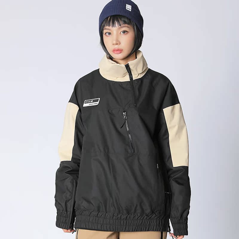 ELNATH new ski coat hoodie waterproof warm veneer pullover casual top ski clothes men's and women's loose thin section