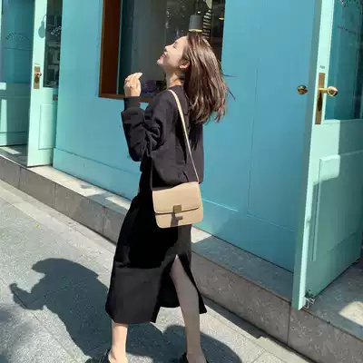 Via Vela autumn Korean retro Hong Kong style split one-piece skirt women's high waist thin loose all-match long skirt