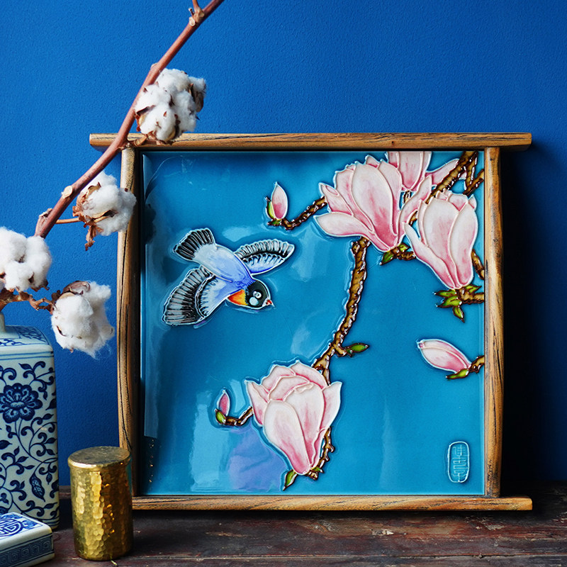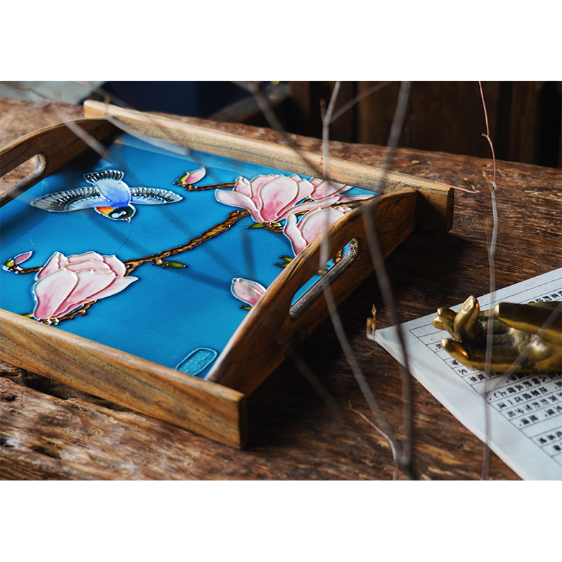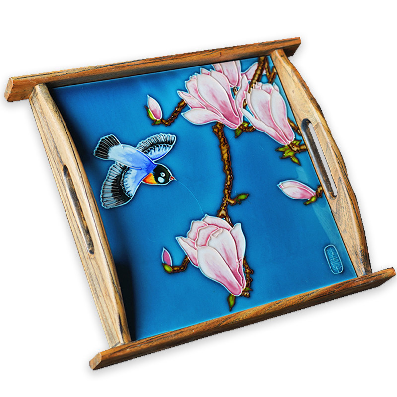 Jia Women's Porcelain Plate Painting Home Ceramic Tea Tray Solid Wood Creative Home Decoration Elm Double Ear Tray