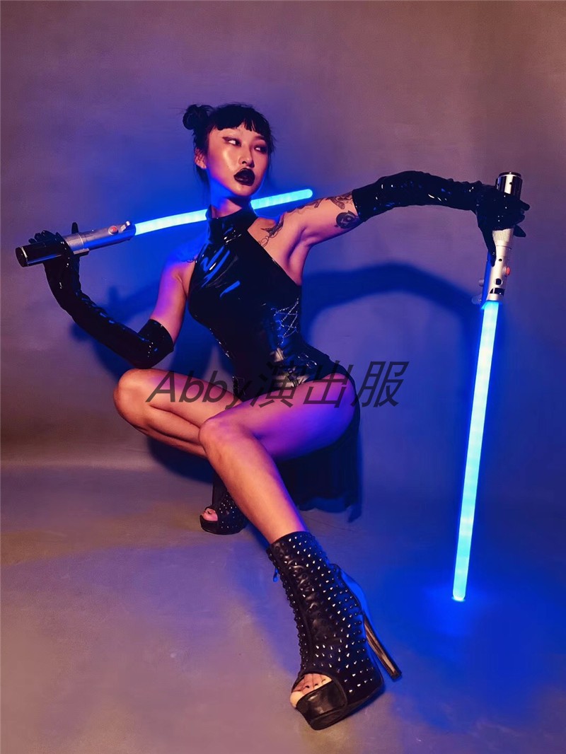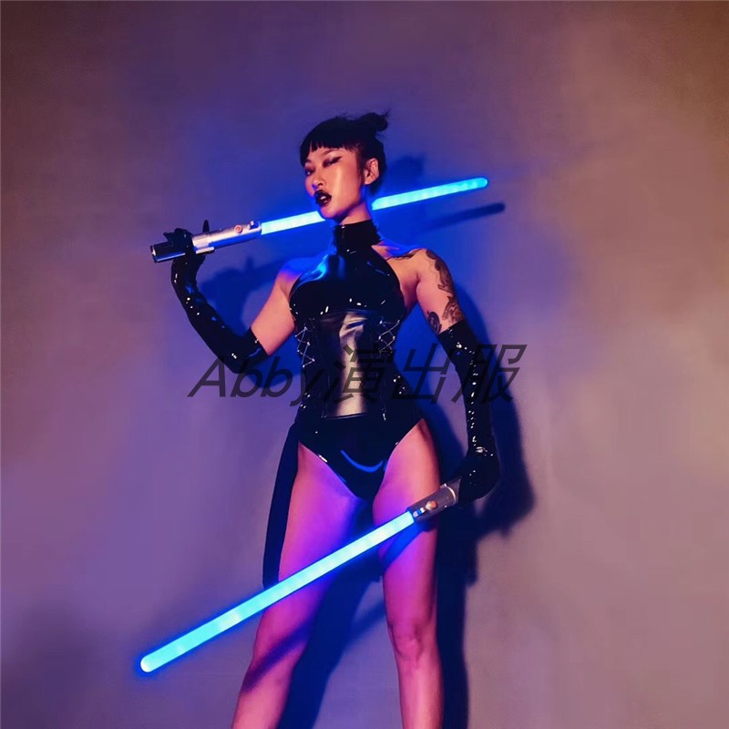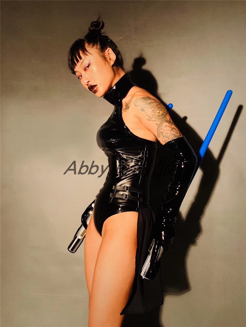 Bar black leather jumpsuit female warrior performance suit GOGO latex party fighting party laser sword performance suit