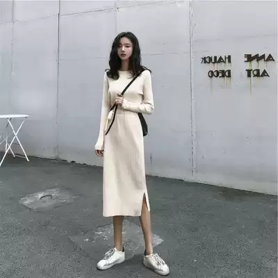 2021 New with coat long skirt with a base long knitted sweater over the knee temperament dress children autumn and winter