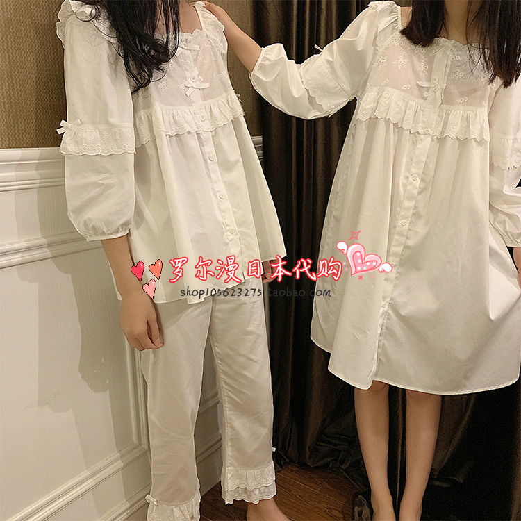soft honeys pure cotton pyjamas two sets female spring autumn fairy princess wind long sleeve stay-at-home clothing autumn and winter