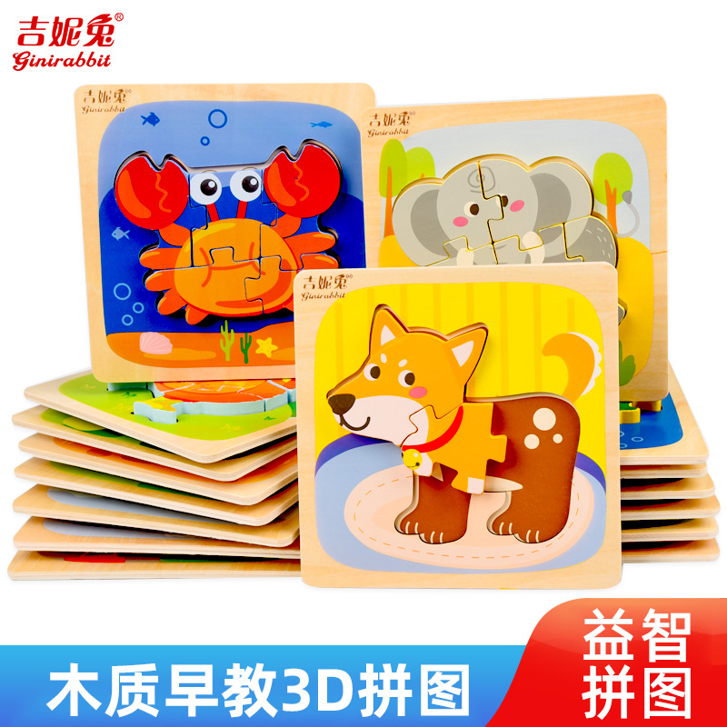 Ginny Rabbit Wooden 3D Puzzle Baby Toddler Early Learning Wooden Toy DIY Manual Brain