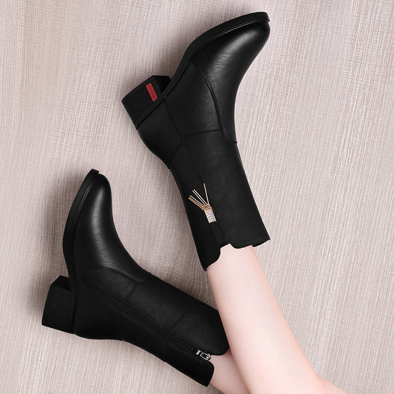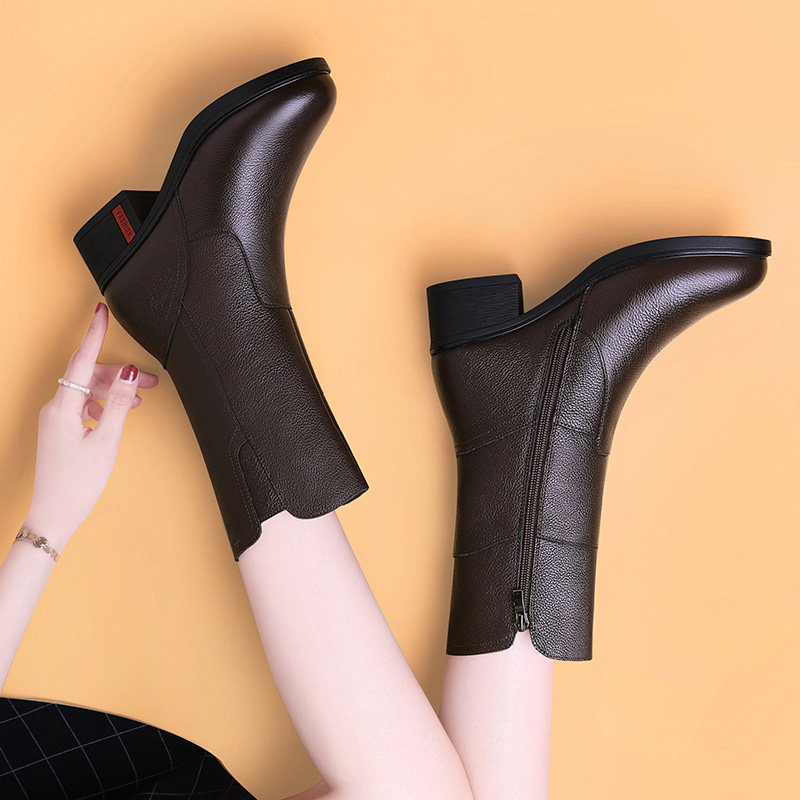 Female boots in cylinder boot heel genuine leather autumn winter 2021 new 100 hitch heel Garnter lady leather boots Martin boots