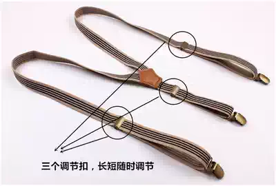 Adult men's striped retro art baby bag men's and women's suspenders with street fashion three-clip Button thin baby bag adjustable