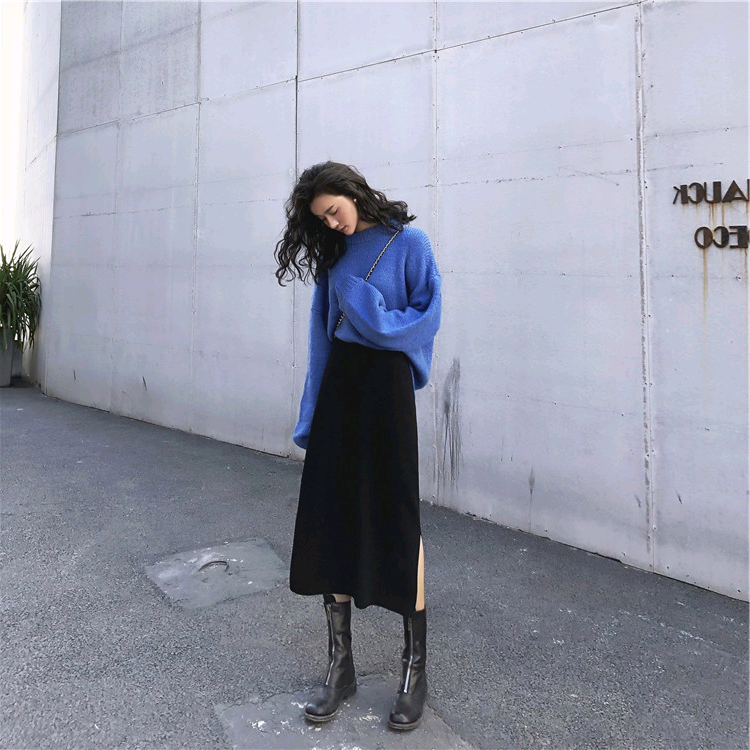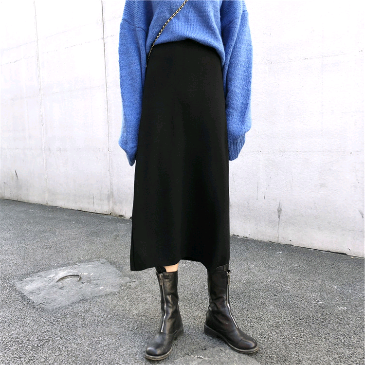 Autumn Winter Knit Pregnant Woman Half Body Dress Hip Skirt Net Red Pregnant Woman Nepotism Baby Dress Spring Autumn Medium Long Version Of the Abdominal Open Fork Step Skirt