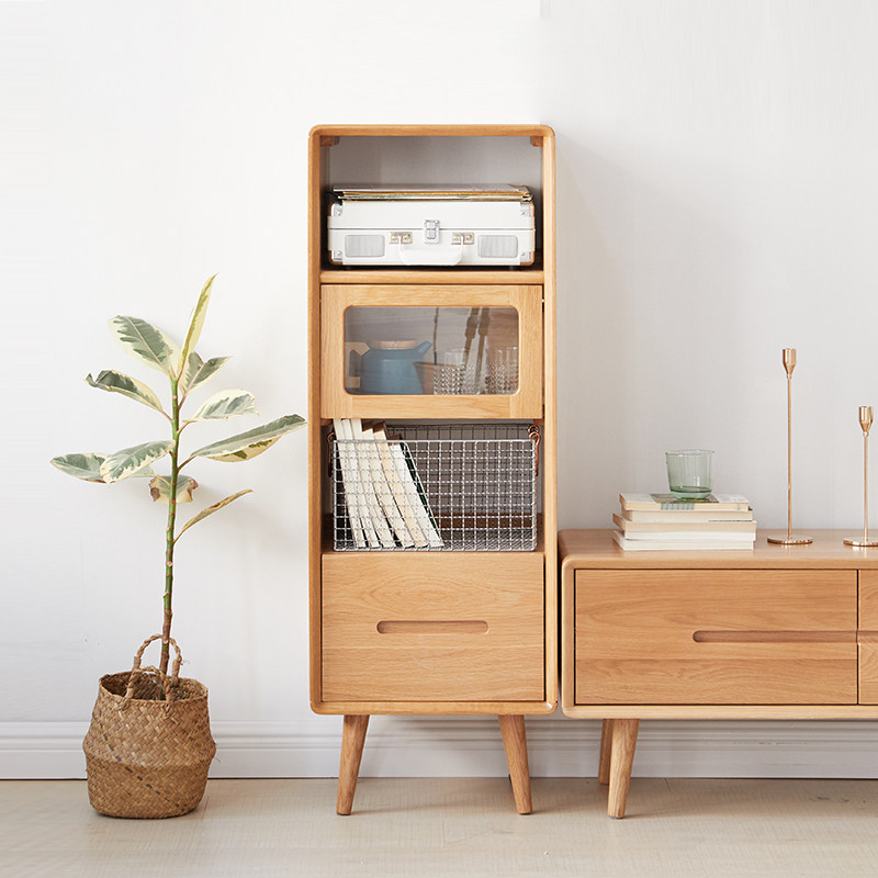 Garland solid wood TV side cabinet glass display cabinet Nordic modern minimalist storage cabinet storage cabinet living room porch