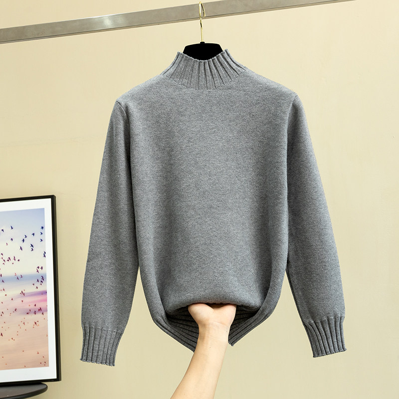 Knitted bottoming shirt women's long-sleeved inner with foreign style autumn and winter warm and thin pullover half turtleneck sweater women 2020 new