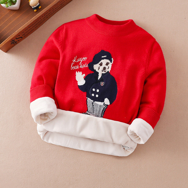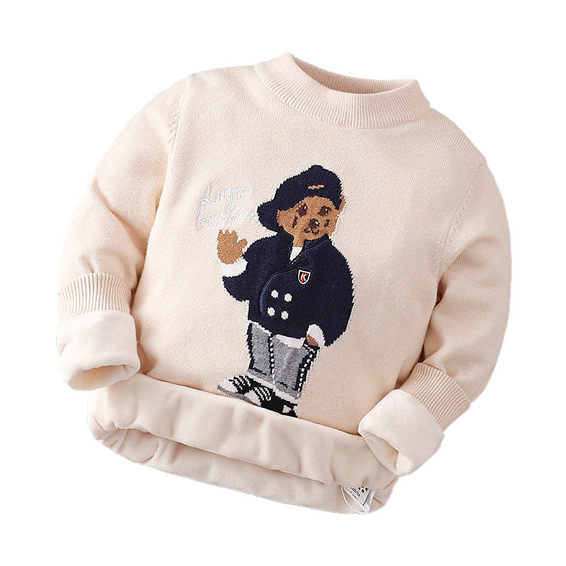 Children's sweater boy's pullover autumn and winter style plus velvet thickening middle and big children's warm baby knitted bottoming shirt bear boy