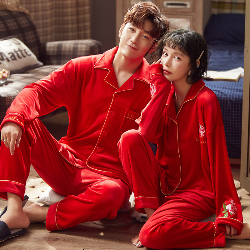 Couple pajamas winter Hashikuji Daddy thin sleeve long sleeve trousers warm mentsHome suit