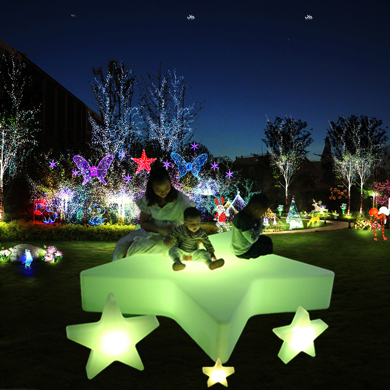 Outdoor Plaza Children Seat Mall Beauty Chen Luminous Mesh Red Cloud Duo Chair Garden Forest Landscape Pentagram Star Bench