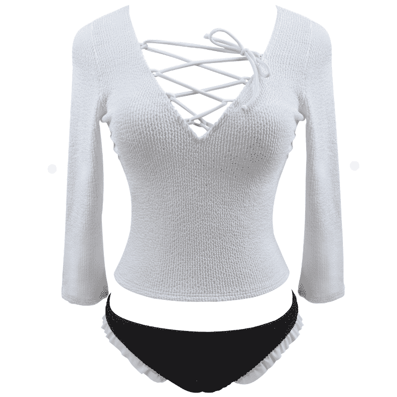 valtos bikini long sleeve sunscreen spa swimsuit infairy Fan deep V strap Holiday swimming Two-style swimsuit