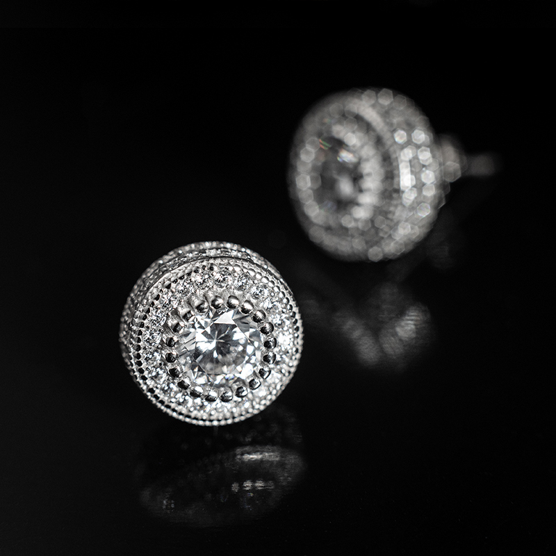 A pair of S925 sterling silver micro-inlaid full diamond ear pins
