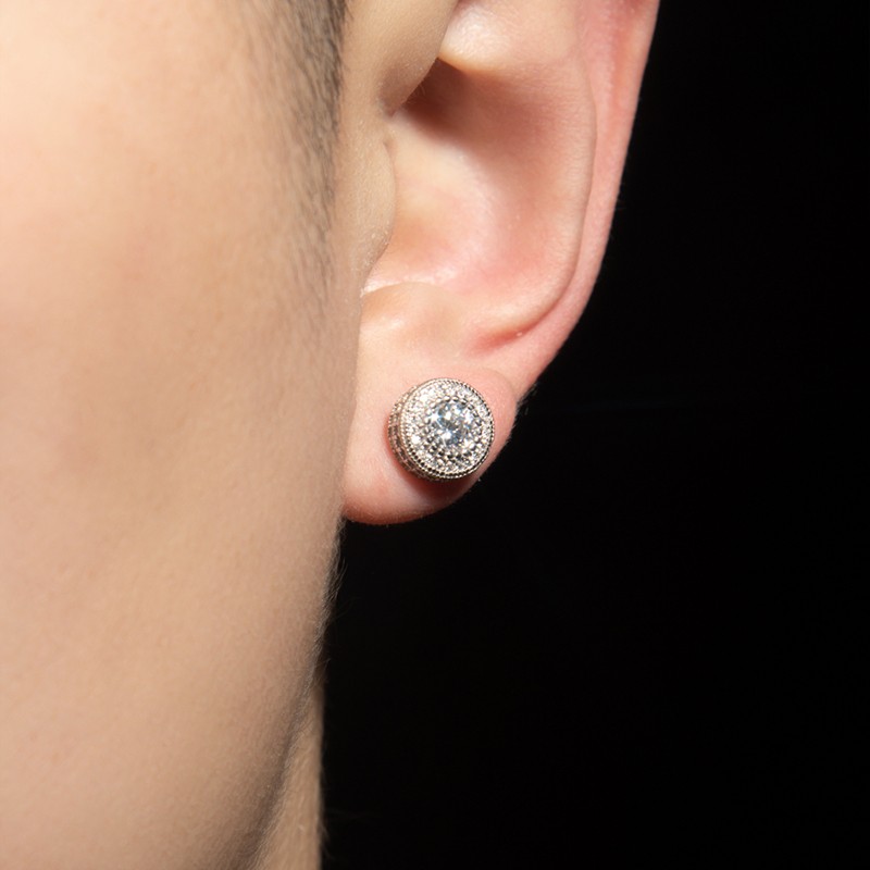 ICEGANG sterling silver 925 full diamond ear needle Europe and the United States hip-hop Hiphop zircon trend rap street all-match jewelry
