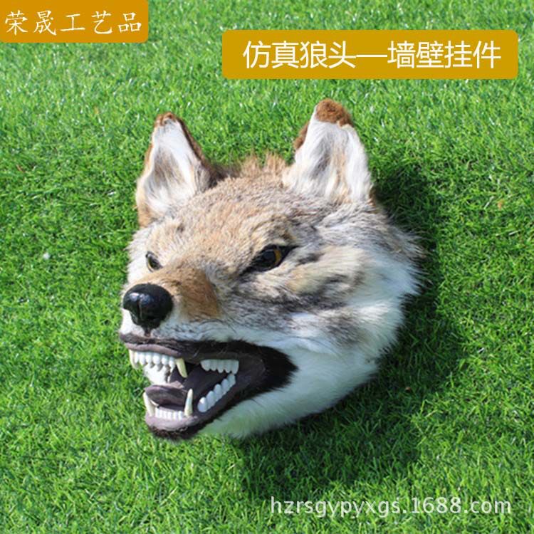 Manufacturer direct sales emulated wolf head wall pendants fur craft gift hem decorated wall pendants Home Decorative Items Film and TV props