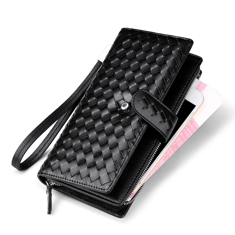 Men's real leather wallet male long zipper handbag business wallet, cowskin youth hand bag weaving new leather wallet