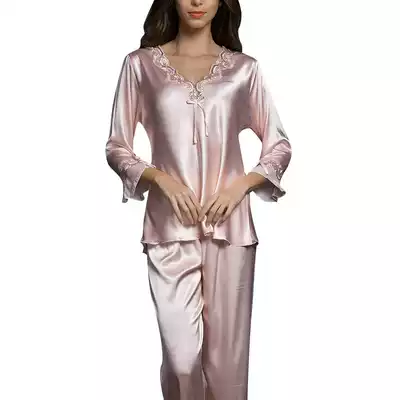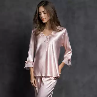 Spring and summer sexy silk pajamas women's two-piece New Ice Silk robe set lace thin silk home clothes
