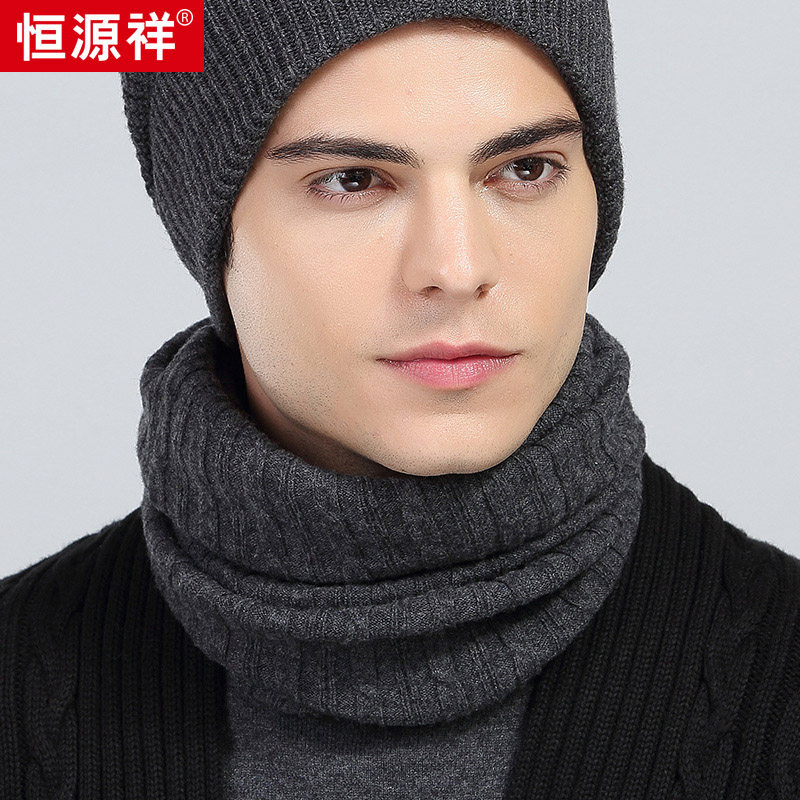 Hengyuan Xiang wool scarf woman winter sleeve head circumference neck male protection cervical spine warm and cold-proof neck sleeve gift box integrated wave