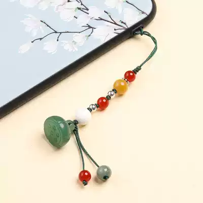 Chinese style mobile phone lanyard pendant anti-lost shell U disk short lanyard Jade Lotus personalized key pendant pendant