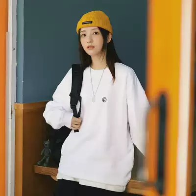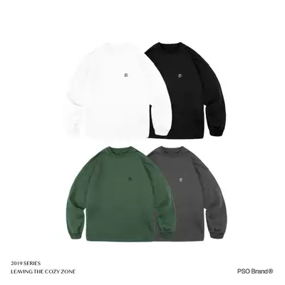 PSO Brand basic simple embroidery bottoming shirt solid color round neck pullover thick cotton T men loose couple tide