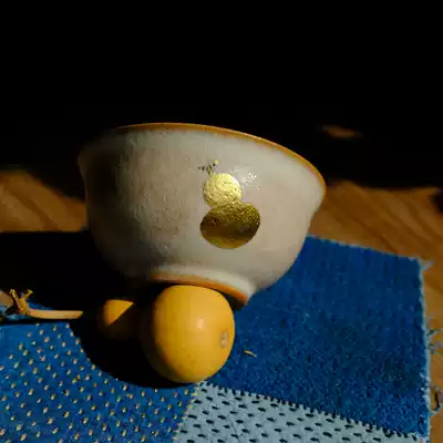 Dust-free side honey gray glaze pure gold gourd rice bowl pure hand-painted antique clay plant ash glaze soup bowl