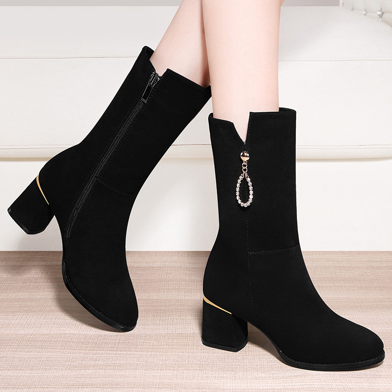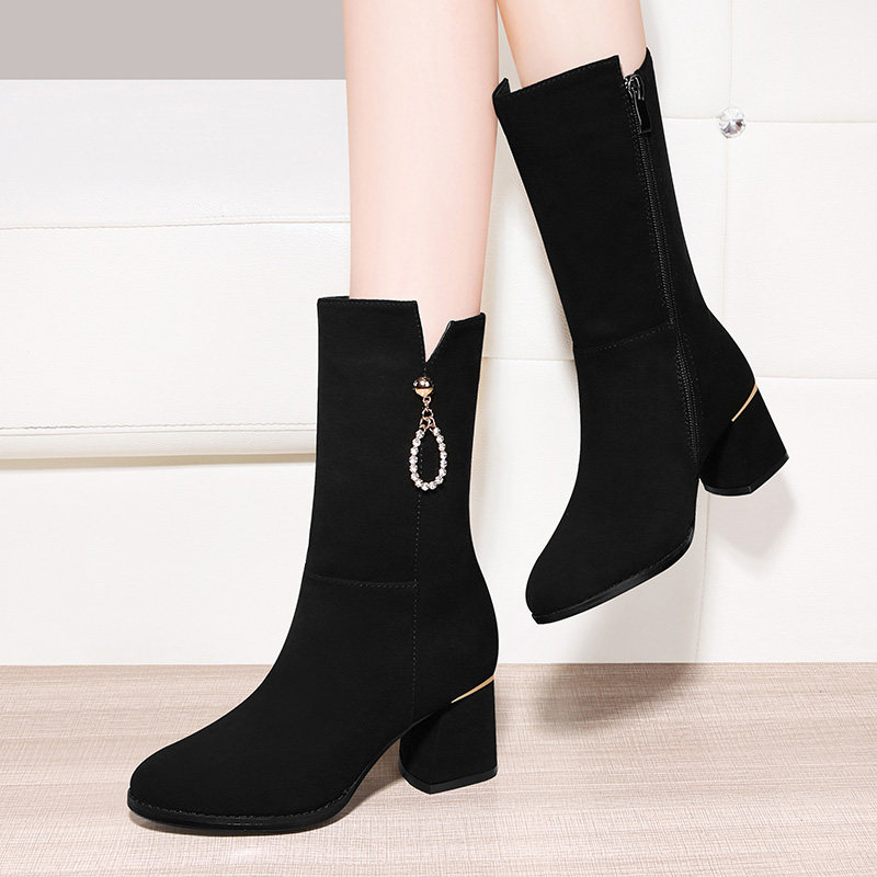 Frosted mid-cylinder boots with the new women's shoes in 2021 High heels with mum autumn and winter gush women boots