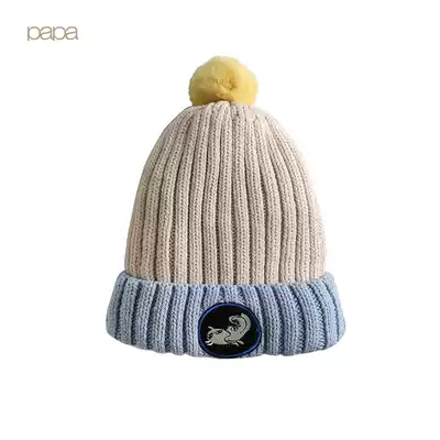 papa autumn and winter men and women baby wool hat baby sleeve head ear hat children foreign pie color color knit hat