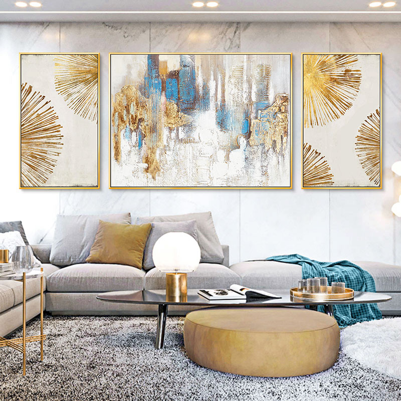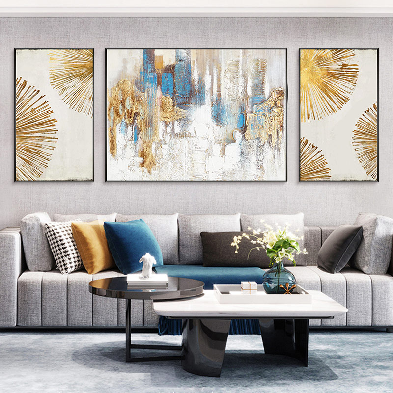 Modern minimalist living room Triple drawing hallway Pure hand painted light luxury bedroom sofa background wall decoration painting